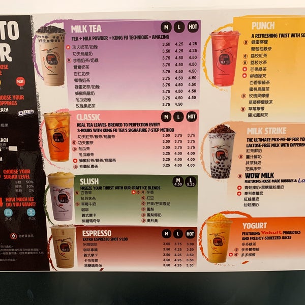 Menu Kung Fu Tea Fresh Innovative Fearless Leading Tea Brand